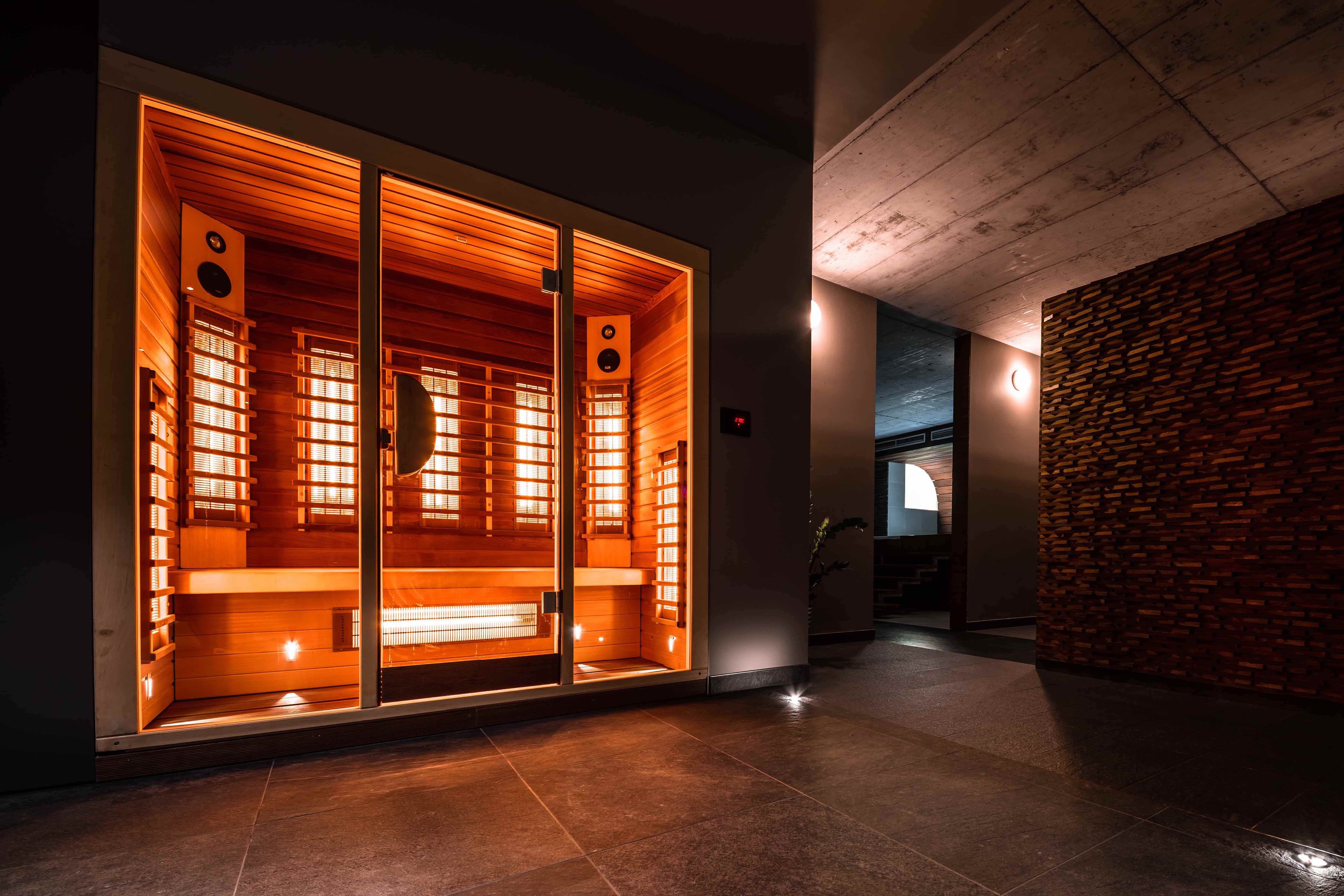 - Wellness a relaxační část – whirlpool, finská a infra sauna, ochlazovací bazének, aromapára, tepidárium, relaxační lehátka, vyhřívaná podlaha, venkovní terasa